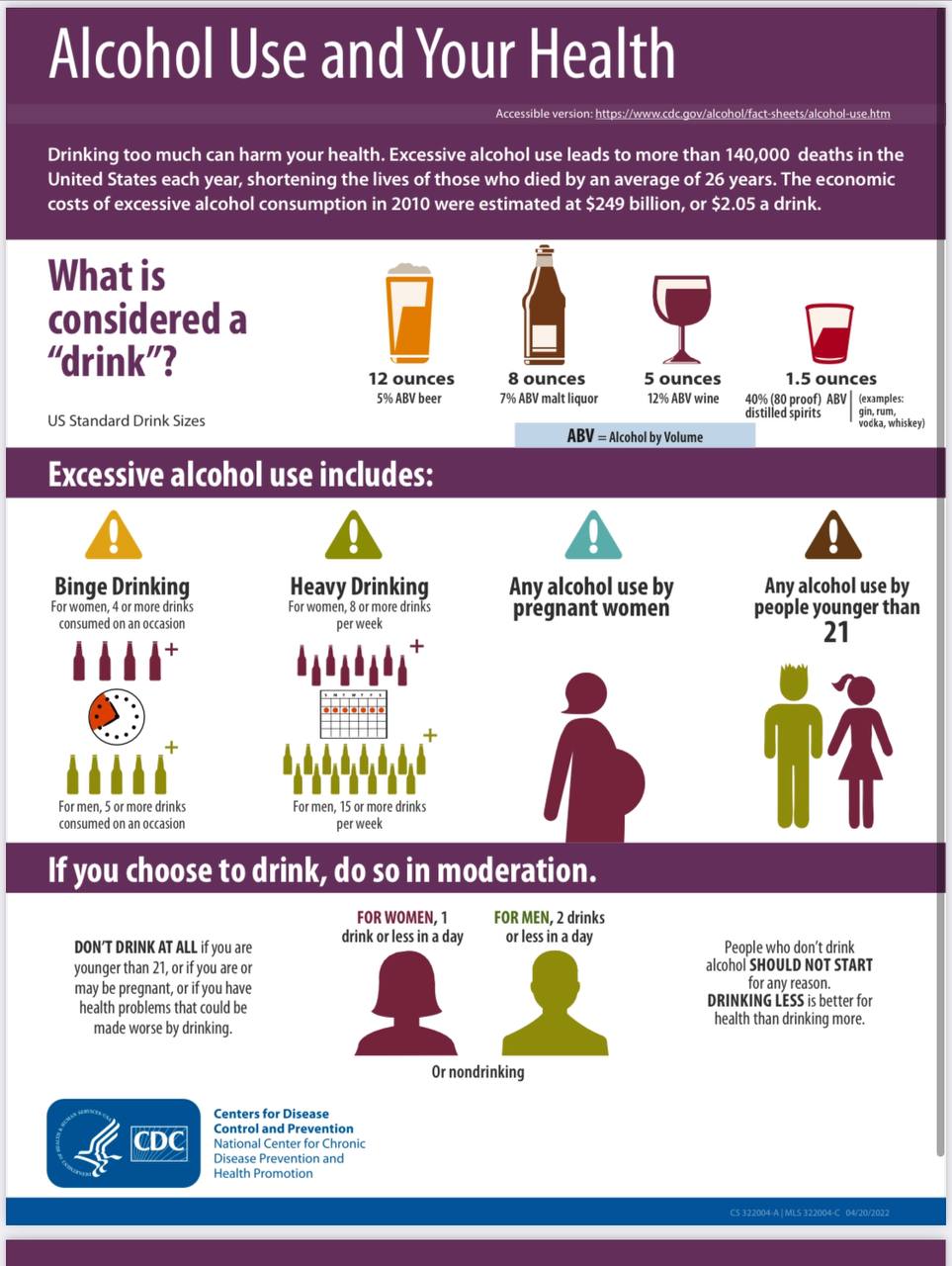 - حداکثر یک درینک استاندارد روزانه برای خانم ها، و حداکثر دو درینک استاندارد روزانه برای آقایان در نظر گرفته شده.