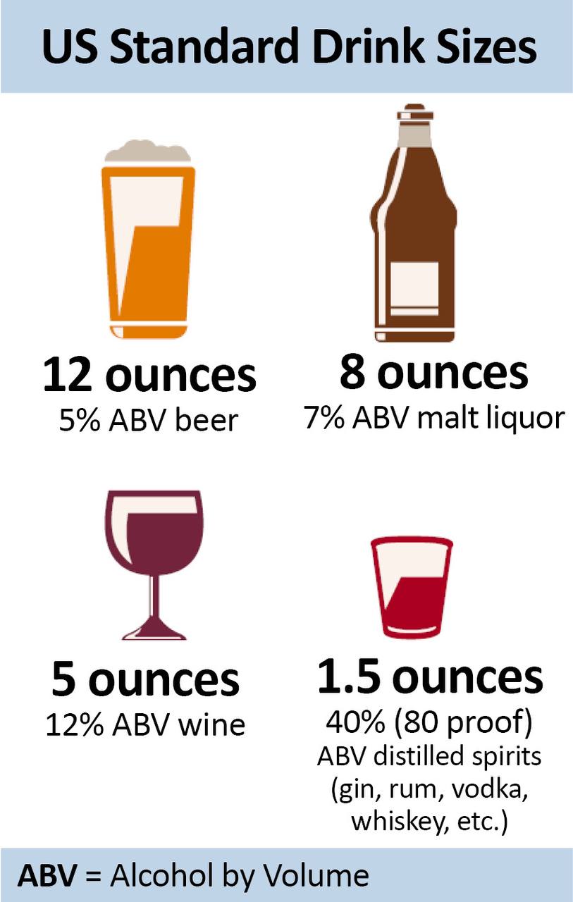 جالب است بدانید که مقدار الکل خالص در یک درینک استاندارد در انگلستان و در اتحادیه اروپا کمتر از امریکا بوده و حدودا بین 12-8 گرم است و این موضوع سختگیریها و حساسیت های سیاست گذاری های سلامت را از سوی کشور های مختلف نشان میدهد.